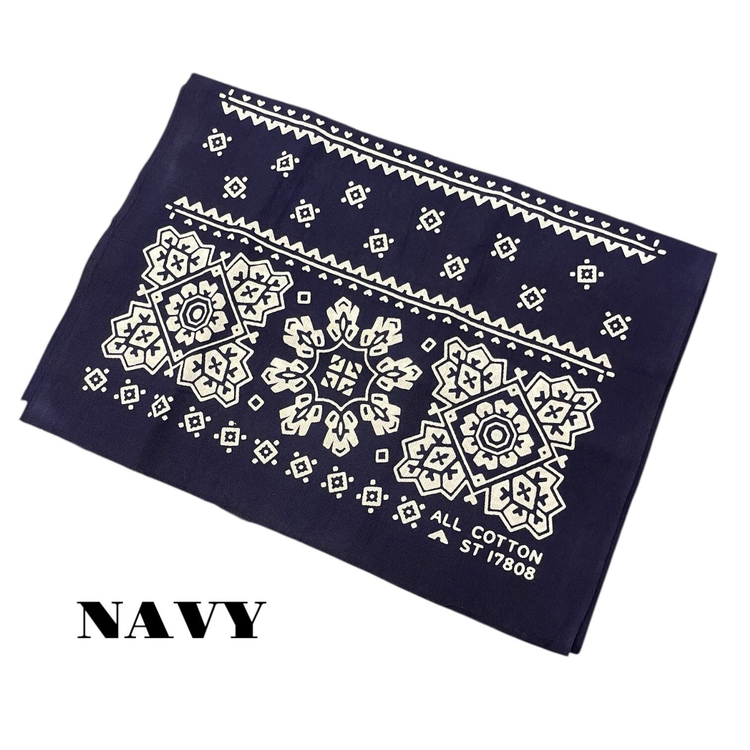 アメリカのヴィンテージバンダナをモチーフに様々な図案を作ってきましたが,この一枚は花をデフォルメしたような柄で,特に今回力を入れたのが「畳んだときの見え方の変化」です.