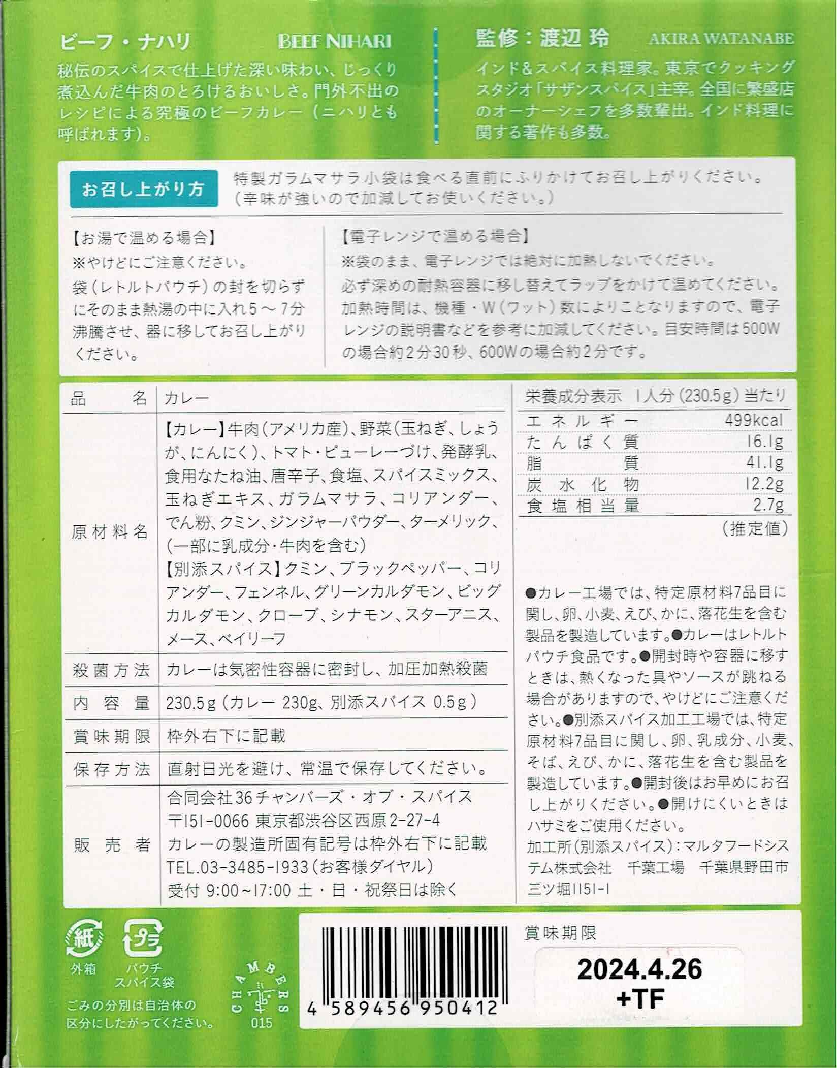 36CHAMBERS OF SPICE/ビーフナハリ