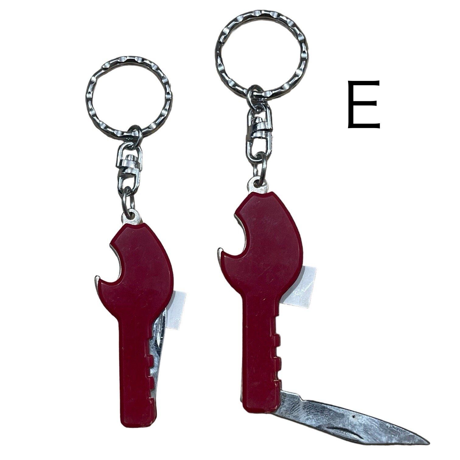色や形がなんとも言えないノスタルジーなマルチツールキーホルダー いざという時あると便利なんですよね SIZE(本体部分) A:5.5cm/B4.5cm/C4.2cm/D5.8cm/E6.1cm