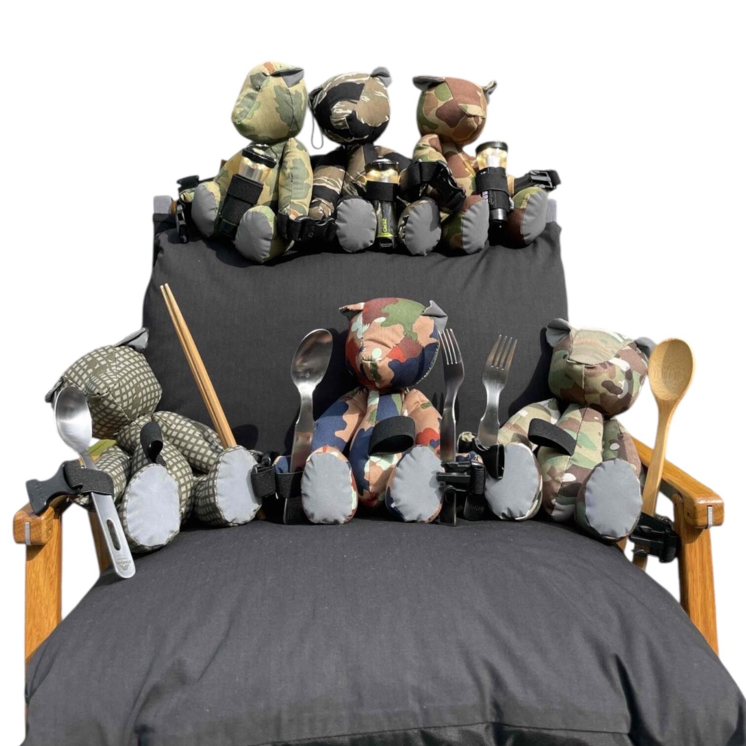 左右の手にはカトラリーや小物も収納出来るゴム紐の仕切りと、20mmのバックルが付いているので色んな工夫で遊べます