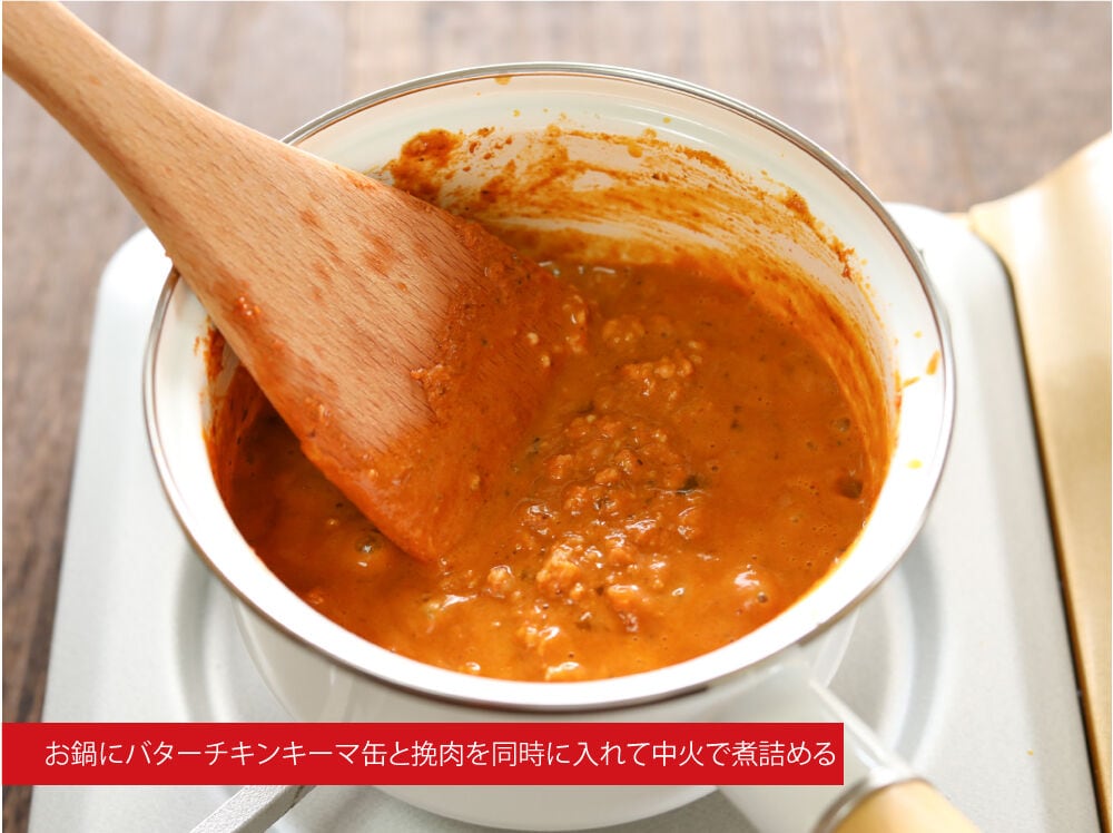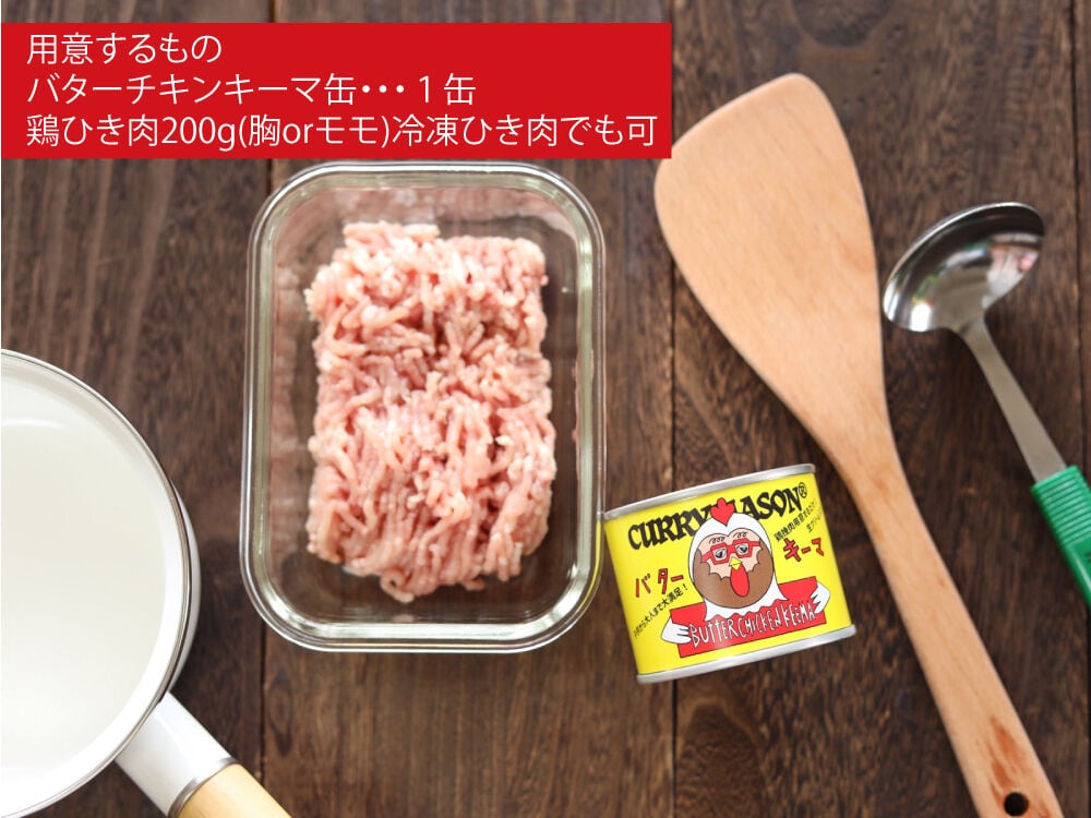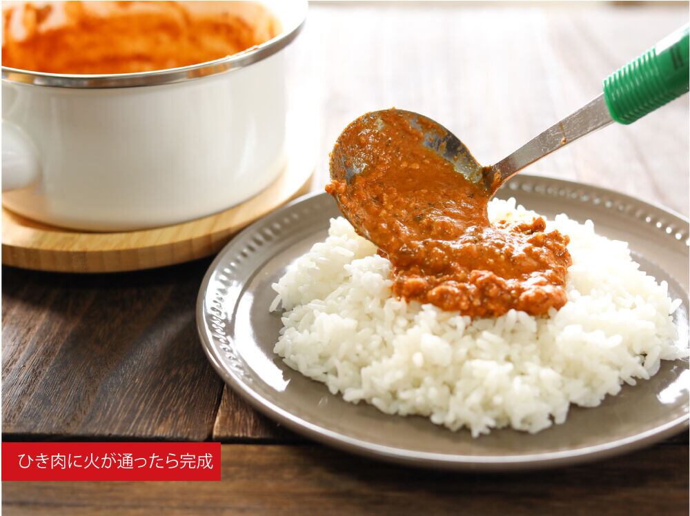 作り方も超カンタン、中身は味付きのペーストなので鶏ひき肉だけを用意すればOK。あとは生クリーム入りのルゥが焦げないように中火で挽肉に火が通るまで優しくかき混ぜたら出来上がり!